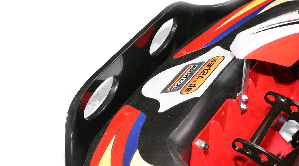 In the Box | Front spoiler and rear protector made from high impact resistant plastics compound, side impact protection mounted in rubber dampeners, side impact protection for front and rear wheels made from strong plastics, robust steering angle limiter mounted under the steering wheel, mechanical disc brake with ventilated brake disc (easy maintenance) and optional hydraulic brake system, drive belt with low maintenance periods, twice mounted (joint heads) pedals with integrated 4-stage pedal reducer, removable anti-gas-brake-system (spares clutch and brake system), integrated tough seat adjustment (adjustment track 100 mm), reinforced aluminum rims, shaped rear axle cover made from strong GRP |